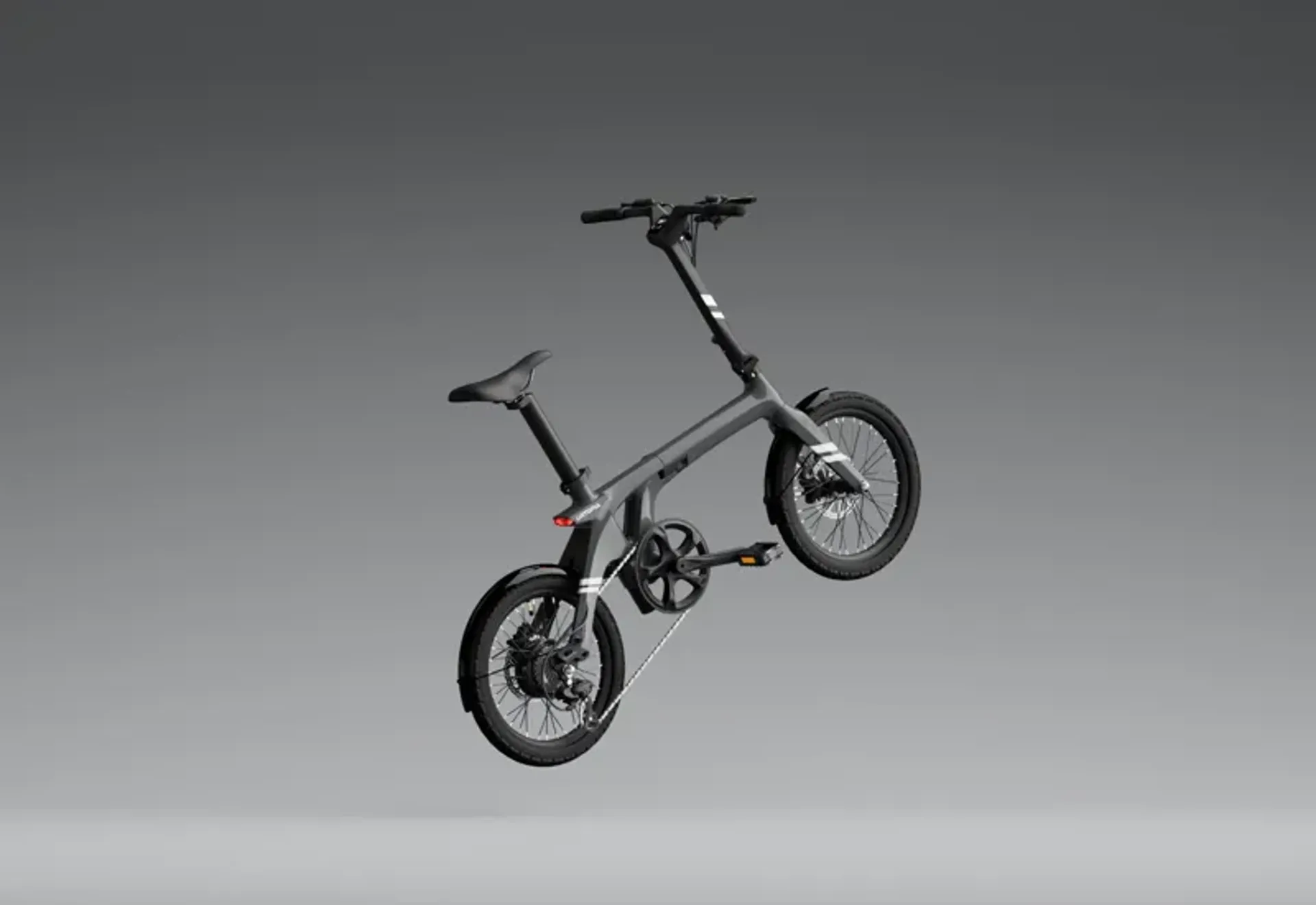 The taillight and headlight are seamlessly integrated with the bike frame, along with hidden wiring and battery design, giving the Carbon Fold 1 a sleek, minimalist look.
